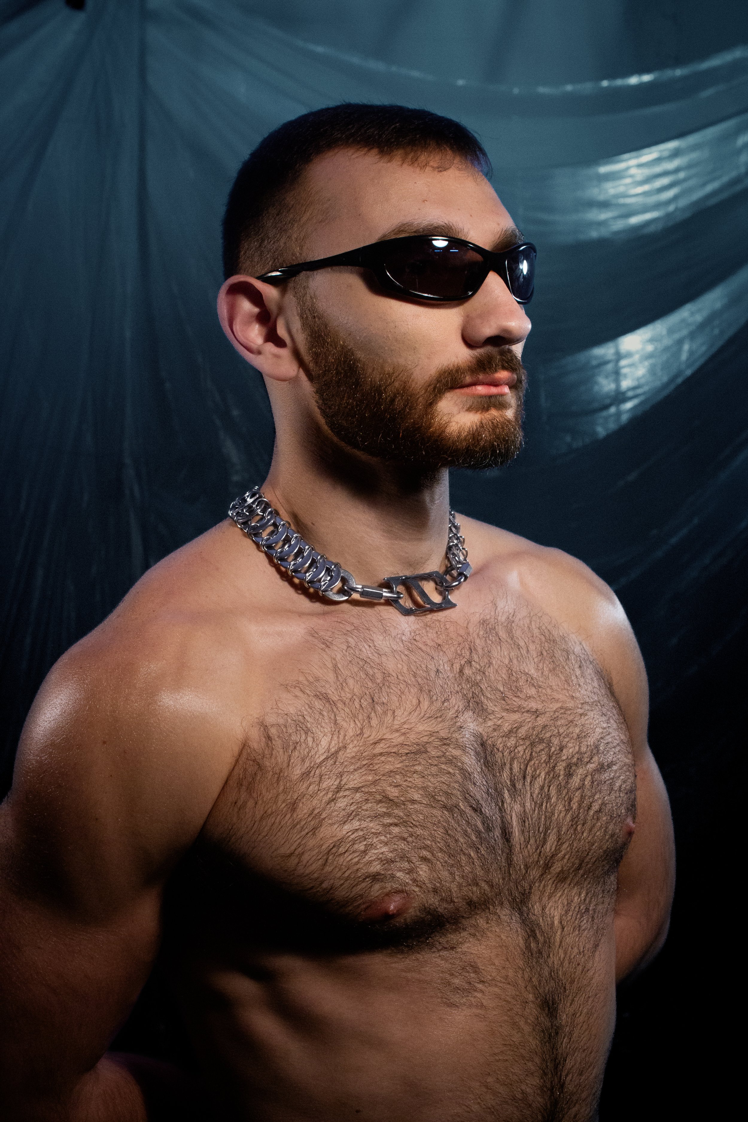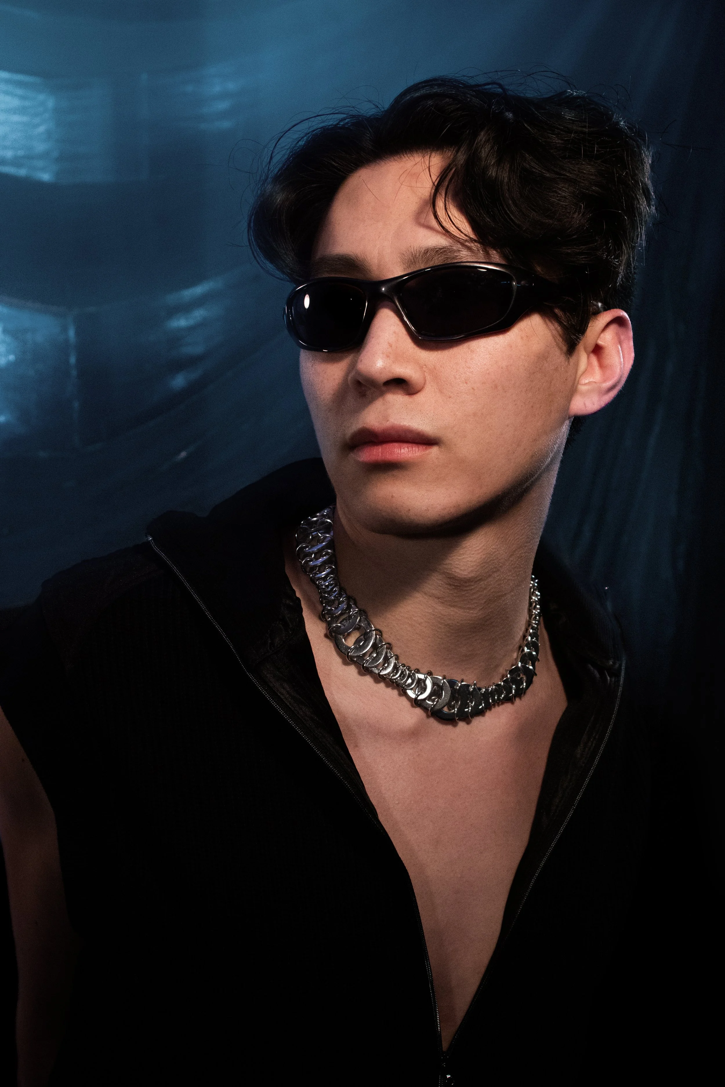 INDUSTRIAL NECKLACE CRAFTED FROM HEAVY-DUTY WASHERS AND RINGS, FEATURING A DUAL CLASP AND SIGNATURE LOGO PENDANT. AVAILABLE IN MULTIPLE SIZES FOR LAYERING OR STANDALONE WEAR.
