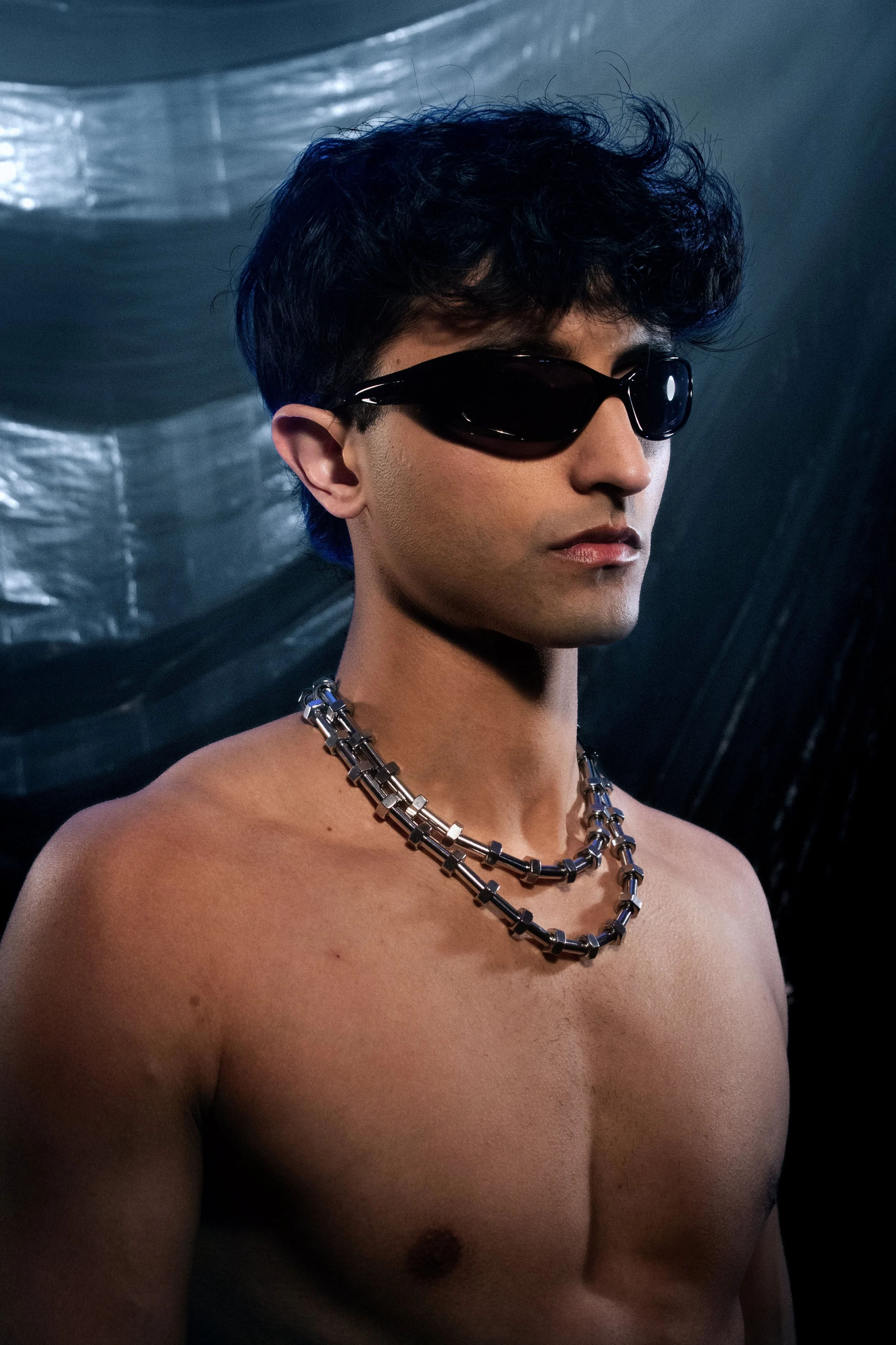 BOLD NECKLACE CRAFTED FROM STAINLESS STEEL HEX NUTS FOR A UNIQUE INDUSTRIAL LOOK. FEATURES AN ADJUSTABLE CHAIN AND SLEEK LOGO PENDANT. DURABLE AND VERSATILE, PERFECT ALONE OR LAYERED.